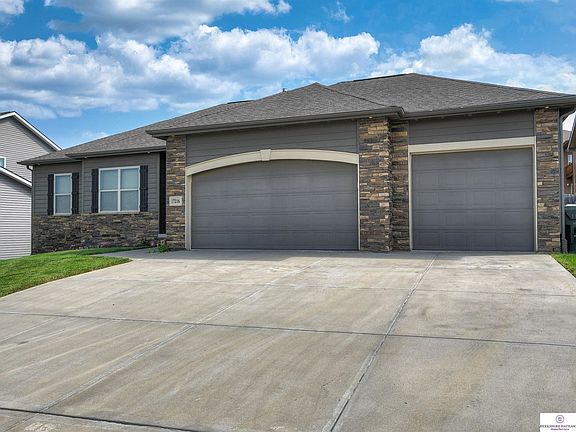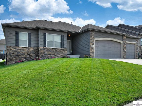 *BRAND NEW CARPET THROUGHOUT MAIN* Built for the entertainer & car enthusiast. Easy access to Hwy 370 & I-80. Upgrades include: Hardboard siding, cathedral ceiling in main living rm, dining rm light, built in buffet w/ bev fridge, soft close cabinets & drawers in kitchen, double pantry, beautiful outdoor kitchen paver patio w/ fire pit & seating. Open main fl w/ ample space to entertain. Storage galore w/ large closets. Kitchen boasts stainless steel appliances (all stay). Private primary bedrm looks to the back yard complete w/ 9ft+ ceilings, walk in closet & full bath w/ whirlpool tub, shower & raised dbl sinks. Two more sizable bedrms off the front entry w/ full bath. Need garage space? This home offers a 4 car insulated garage w/ heater, smart openers, extra tall ceiling (tall enough for a car lift), hot/cold water & access to back yard. Finish the basement for more living space (egress & 3/4 bth rough in) You will love entertaining inside & out in this house!