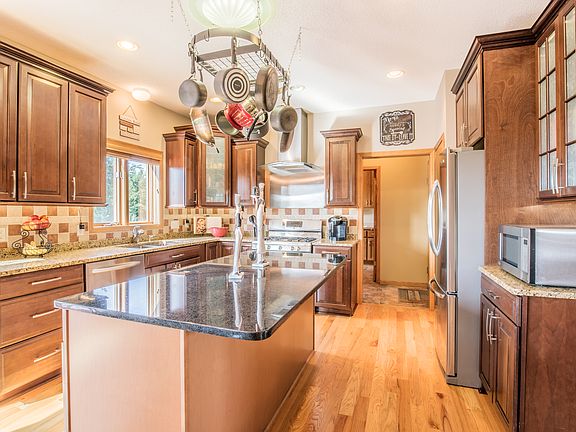 Amazing private backyard offering large deck, grand paver sidewalk and patio with firepit. Outdoor storage shed and child's playset. Newer extended garage for boat or shop. Kitchen offers all stainless steel appliances and range hood! Granite counters in kitchen and bathrooms and wetbar. Finished lower level walk-out with theater, bar, bedroom and recreational area. New furnace 2016. Main Level * Beautiful hardwood flooring throughout foyer, dining room, kitchen, dinette, and family room. * Kitchen features newer cabinetry, granite countertops, large center island with seating, pantry, exterior vented range hood and stainless steel appliances included. * Elegant formal dining room boasts large windows offering abundant natural light. * Formal living room with window seat. * Family room features gas fireplace, built-ins to keep you organized, and wall of windows offering serene year- round views. * Dinette offers tranquil views of backyard and easy access to deck making outdoor cooking and entertaining a joy. * Main level laundry room includes tiled flooring, utility sink, and cabinetry. * 1/2 bath with window and granite counter top. Upper Level * Master suite offers large walk-in closet. Tiled master bath with granite double sink vanity, whirlpool tub, and standalone shower. * 4 spacious bedrooms on one level. * Full tiled bath with granite vanity counter. Lower Level * Spacious recreation room with adjacent media area and bar. * Secondary bedroom offers so many options. * 3/4 bath with tiled shower. Additional Features * Extended 3 car garage is perfect for boat or extra storage. * All bathrooms offer tile flooring and granite vanity counters. * Main level deck, paver sidewalk, and lower level patio with fire-pit. * Landscaping complete with concrete edging. * Outdoor child?s play-set. * Storage shed. * In-ground sprinkler system. * 2016 Furnace. All information deemed reliable but not guaranteed.