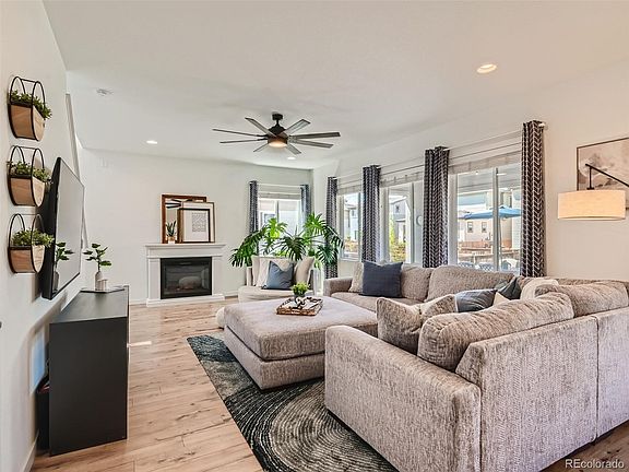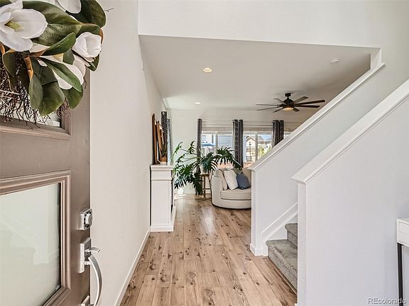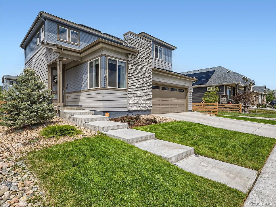 Do not miss the opportunity to own this stunning home that has been meticulously maintained and is move-in ready with so many personal upgrades! You will love the natural light and open concept floor plan throughout the main floor! The expansive living room on the main floor flows comfortably into the beautiful kitchen and dining room, making this area wonderful for entertaining. The kitchen includes granite countertops, stainless steel appliances, a huge eat-in island, and a pantry for extra storage. The main floor office has custom built-in shelving and great natural light for reading and working. The main floor also has a 1/2 bath (which has been stubbed with the ability to easily add a shower in the event it is desired in the future.) Upstairs you will find a primary suite bedroom with attached bathroom, complete with double vanity sinks and a large walk-in closet. You will also find two additional bedrooms upstairs with 1 full bathroom, as well as the laundry closet. As you head down out onto the back covered patio, you will see the expanded deck, garden beds, and professional landscaping. This home sits on the walking path, giving it more privacy and space between neighbors, and the multiple decks make it perfect for summer relaxing and entertaining! The unfinished basement is ready for your personalization or extra storage. 2 car garage attached for your cars and toys. Built in 2020, all major systems are newer in the home (including central A/C!) Save huge on your electric bills with the solar panels! Other upgrades include: upgraded lighting, ceiling fans, Vivint Security Sytem (owned and stays with the home), Nest Thermostat, Ring Doorbell, and window coverings. This home has easy access to the Reunion community pool, slides, parks, and fitness center. Conveniently located with easy access to the Reunion Coffee Shop, Denver International Airport, I-70, grocery store, & restaurants.