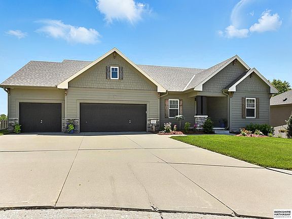 Tucked away at the end of a quiet cul-de-sac in the highly sought-after Millard School District, this spacious 5-bedroom, 3-bath walk-out ranch combines modern style with everyday functionality. From the moment you arrive, the James Hardie siding & oversized 4-car tandem garage create an unforgettable first impression. Inside, the sun-drenched open floor plan features sleek quartz countertops, generous kitchen island, and plenty of room to gather, cook, & entertain. Step out back and unwind in the hot tub (new in 2023 with a 2-year warranty) or head downstairs to the fully finished lower level, perfect for hosting, with a built-in wet bar (complete w/ fridge & dishwasher) and pre-wiring for 7.2 surround sound. Additional upgrades include a radon mitigation system & water softener (both new in 2023), along with a sprinkler system and stylish, contemporary finishes throughout. With convenient access to major roads & every detail thoughtfully considered, this home is read
