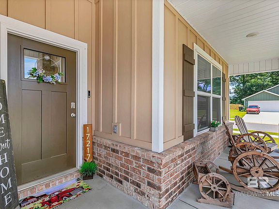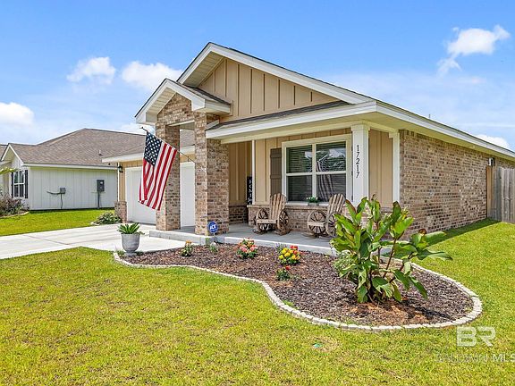 Welcome to 17217 Reflection St in the charming Ponder Place community of Loxley, Alabama! This 2023-built, Gold-Fortified cottage-style home Cali floorplan offers 4 spacious bedrooms, 2 full bathrooms, and 1,791 square feet of beautifully designed living space. Perfectly positioned on a desirable corner lot, this home combines charm, durability, and smart upgrades throughout.Inside, you’ll find no carpet – ideal for easy maintenance and a modern, clean aesthetic. The open-concept kitchen is a true standout, featuring a custom tile backsplash that extends to the back of the kitchen island, giving it a designer touch. Thoughtful upgrades include wood shelving in both the pantry and laundry room, as well as enhanced ceiling fans in key areas for year-round comfort.Step outside into the fully fenced backyard, offering both privacy and space for entertaining, gardening, or pets. Built to Gold-Fortified standards, this home not only enhances peace of mind but may also help reduce insurance premiums.Located in a welcoming, family-friendly neighborhood, Ponder Place features a community playground and is conveniently situated for quick access to Foley, Daphne, and I-10.Whether you’re a first-time homebuyer, looking to downsize, or seeking a strong investment property, this move-in-ready gem checks all the boxes. Don’t miss your opportunity to own a nearly new home with standout finishes and lasting value—schedule your showing today!technology. Hardie Board and Batten AND brick exterior with attached 2-car garage. Home is Gold FORTIFIED. New ceiling fans have been installed in the home, NO carpet, and upgraded wood shelving in the pantry and laundry room and upgraded shower fixture in primary bathroom. Fully fenced backyard. Buyer to verify all information during due diligence.