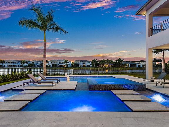 Set in prestigious Boca Bridges, this FULLY FURNISHED Vanderbilt Grand Contemporary is a modern architectural masterpiece. Situated on a lakefront property, this estate was elevated to a higher standard by Decorator's Unlimited and encompasses over $1.6MM of upgrades. This state of the art residence showcases unparalleled design with built-in custom cabinetry, double-sided water vapor fireplace, glass-enclosed wine room and customized audio/visual system. The backyard oasis hosts a resort-style pool and spa. A crafted contemporary design, a luxurious statement and a truly epic home. Luxury living is redefined at Boca Bridges where residents have access to resort amenities inclusive of a restaurant, beach entry pool, kids splash park, fitness center, tennis and pickleball courts.