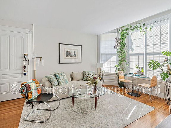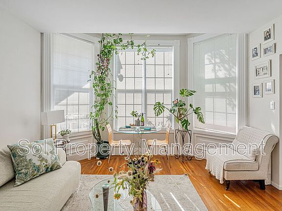 Charming 1BR + 1BA apartment on a picturesque, tree-lined street in one of the area's most sought-after neighborhoods. This beautiful space offers timeless charm, abundant natural light, and peaceful surroundings. The living area has tall windows and hardwood floors, creating an inviting living space. Bedroom features a walk-in closet and an en-suite bathroom with a tub. There is a classic galley kitchen equipped with an electric range and refrigerator plus a bright bonus space, which can be used as office or dining area, with views of the back part of the property. Additional amenities include a private back porch area, dedicated furnace and water heater, one reserved on-site parking space, shared laundry facilities conveniently located on-site, and owner-paid water and trash services. Quiet neighborhood, conveniently located just a few blocks from downtown San Rafael's trendy restaurants, boutiques, and entertainment. 1 pet considered. Income must be 3x monthly rent, credit 750+.