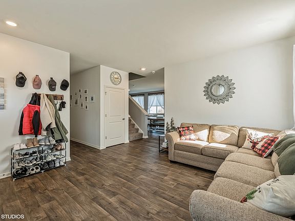 Discover the tranquility and convenience of living in the Oaks at Irish Prairie! This nearly new, 4-bed, 2.5-bath home is exactly what you've been looking for. You'll love the open-concept layout integrating the formal living room, family room, dining, and kitchen areas. The kitchen features generous cabinet and counter space, stainless steel appliances, and pantry. LVP flooring throughout the main floor is beautiful yet durable. Upstairs you will find four generously sized bedrooms that offer peaceful retreats, with the primary suite featuring a large, private en-suite bathroom and walk-in closet. The laundry room is conveniently located on the second floor and includes beautiful and functional custom shelving. Out back, the large fenced yard is perfect for dogs and children to play, and the recently installed concrete patio provides the perfect space for outdoor entertaining. If you need even more space, the full-sized basement features large windows that look into the back yard offering a big, bright space for storage or extra living space. Whether you're drawn to the tranquil countryside setting or close proximity to so many amenities, this home blends style, comfort, and functionality. Some of this home's many features include a fully integrated and transferrable home security system, passive radon mitigation, and builder's warranty. Schedule your showing today!