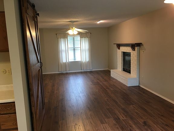 Personality and charm, a beautiful, comfortable home in a great neighborhood, managed by landlords who care about their properties. Features include: New hardwoods, new paint, spacious kitchen, barn door style sliding door, new fireplace mantle, Drapes are included over plantation blinds. Wonderful safe neighborhood close to hospitals. Tiled kitchen. Great next door neighbor. This is a townhouse style, bedrooms upstairs. The kitchen is huge. The living/dining area is also large. Bedrooms have big closets. Roomy bathroom with lots of cabinets. Do not worry about cutting the grass, we have someone that does it. No pets No smokers, not even outside. Tennent provides water, sewer, trash, electric, internet.
