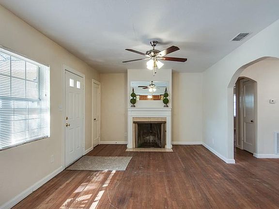 This beautifully updated home is situated on a corner lot and offers 3 bedrooms, 2 bathrooms, 2 living spaces, one with fireplace, dining room and an inside laundry room. All wood floors throughout. Updates include new kitchen cabinets and counter tops. Black appliance package. Updated bathrooms, fresh paint, updated lighting and ceiling fans, BRAND NEW ROOF with 30 year architectural shingles! Oversized 2 car garage with enough room for workshop area.