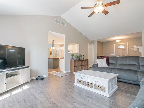 Looking for 100 % MAIN FLOOR LIVING? This move in ready home is it! Enter to soaring cathedral ceilings and abundant daylight making this living space feel bright and airy. The Kitchen has recently been updated to White Cabinetry with large subway tile back splash and a coffee bar with additional cabinets for tons of storage. The brand new vinyl plank flooring really ties these spaces together. Extra large main bedroom features ensuite and walk in closet. The backyard is big enough to entertain or just relax peacefully. You can choose from the deck, the screened gazebo on the 33x15 stamped concrete patio or fire pit all with-in the PVC Privacy fence. The garage has been finished off with epoxy floors, extra cabinets and BONUS a heater! Still need more storage, the Shed in the back yard has you covered. City water and sewer and close to I65