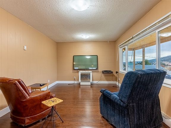Step inside to find bright, inviting living spaces featuring new laminate flooring, updated baseboard heaters, and newer windows that fill the home with natural light. The spacious living room centers around a gas fireplace, creating a warm and welcoming atmosphere for the cooler months.