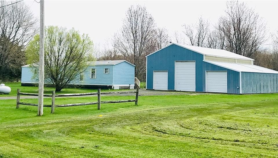 Don't miss this AFFORDABLE Ranch Style home on 1.6 Acres in the Town of Sterling! This 3 BR, 1 and 1/2 Bath Single wide has been well cared for and it shows! Nothing to do but move in and enjoy easy first floor living in the country! Open floor plan, new furnace (Trane house furnace) and many other tasteful updates too including new floorings. The Expansive treed backyard, patio area, and green lawn are perfect for your year round enjoyment! The Large garage/pole barn (40x45 ) is ideal......Three bays, extra tall ceilings, concrete floors, electric. & over 100 feet of storage area above the built in workshop! This building is a must see! Great views of the countryside in this location, there is a large driveway for plenty of parking plus its already wired for generator back up!