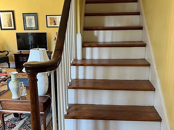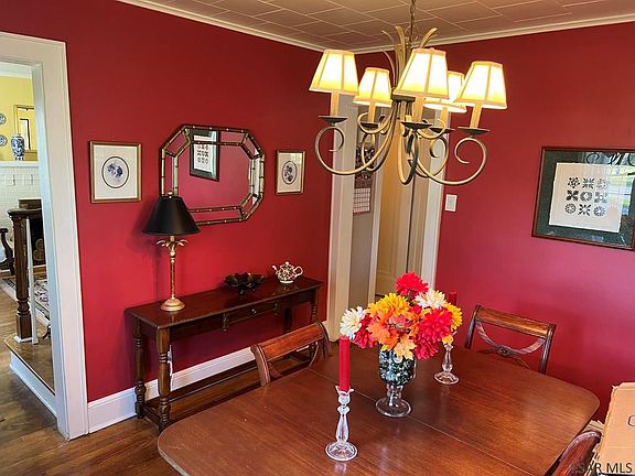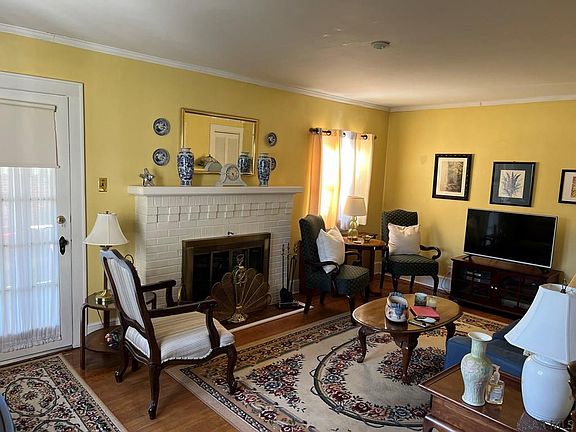Spacious living area in this charming 3 bedroom home with extra large side parking area as well as large back yard. Wood-burning fireplace, beautiful staircase leading to two spacious bedrooms and a smaller office or nursery. Updated vinyl windows and beautiful hardwood floors throughout home. Updated kitchen with extended eat-in area. Spacious 2 car garage, plenty of storage space too. Nice covered side porch. Very Pretty home...