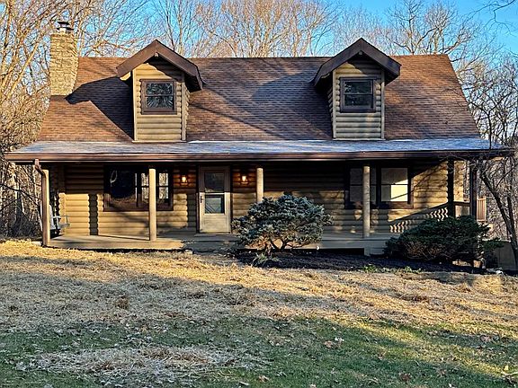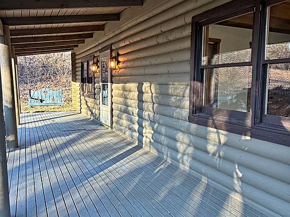 Welcome to this beautifully maintained log home that is nested on 5 acres. Step onto the inviting covered front porch and enjoy the quiet moments on the porch swing before entering the open-concept living space, highlighted by stone fireplace, tall ceilings, new kitchen with new SS appliances. This home offers 3 bedrooms, 2 full baths, with a finished basement that provides the perfect family room or recreation space. Step outside to appreciate the extensive concrete work and soak in the peaceful sounds of the country- a perfect setting for relaxation and entertaining. This beautiful home is ready for its new family to move right in. You don't want to miss this opportunity.