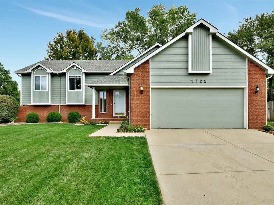 Fabulous 5 bedroom, newly remodeled home on a corner lot in Maize schools! HVAC is only 3 years old, new siding with Block-It house wrap. The exterior and interior has just been painted. Most windows recently replaced (all upper level, entry and 1 downstairs). All new carpet and trim throughout. Main floor has engineered hardwood floors, new ceiling fans and chandelier, newly painted ceilings. The open floor plan is vaulted in living room, dining room and in the large recently renovated kitchen. Enjoy your spacious white kitchen with upgrades to cabinets including slide outs, soft close hardware and new doors. Granite countertops, subway tile, newer stainless appliances and faucet with touch control. Pantry and large eating bar provide a ton of storage and work space. USB charging outlets and recessed lighting. The Master bedroom has a remodeled en suite with 2 sinks and full tub/shower. Both bathrooms on this level have been remodeled with new vanities, sinks, cabinets and toilets. There are 2 additional bedrooms on this level. The basement lower level has view out windows, wood fireplace with gas start, 2 more bedrooms and 3rd bathroom and laundry room with a new toilet also. Family room is spacious and includes a large bar for entertaining. This corner lot home is fenced and has a sprinkler system. Neighborhood has a playground that also includes a basketball court and tennis court.