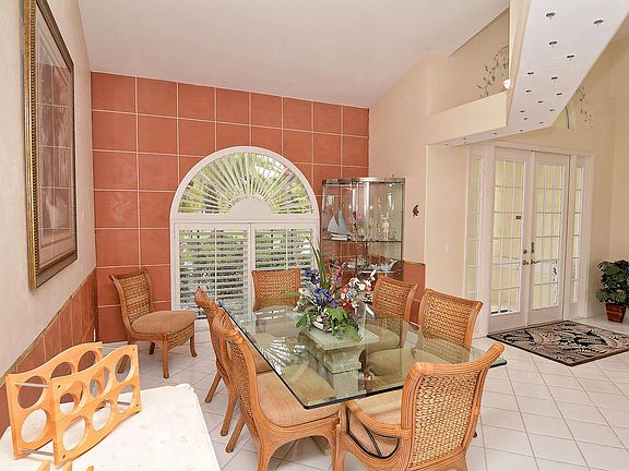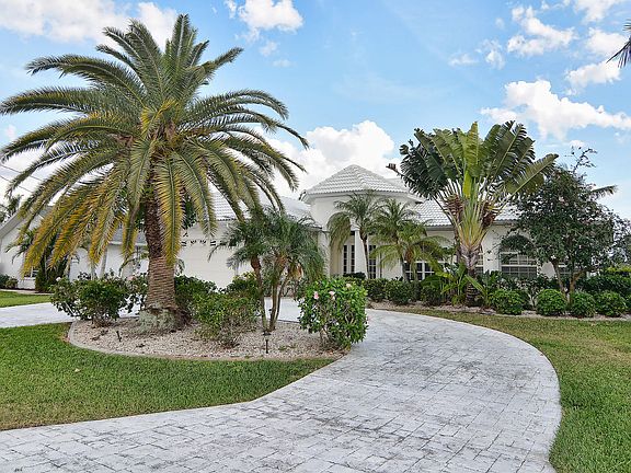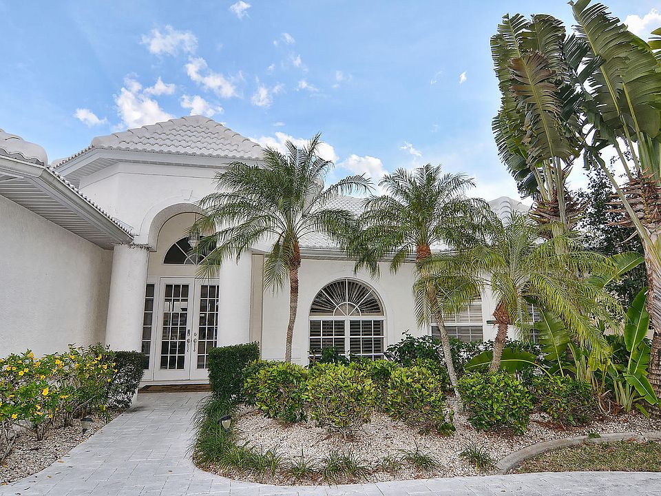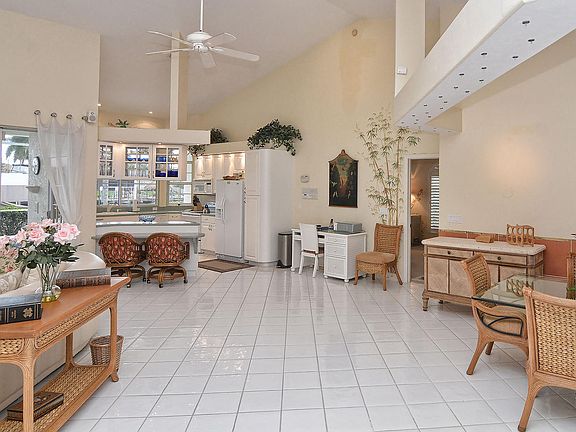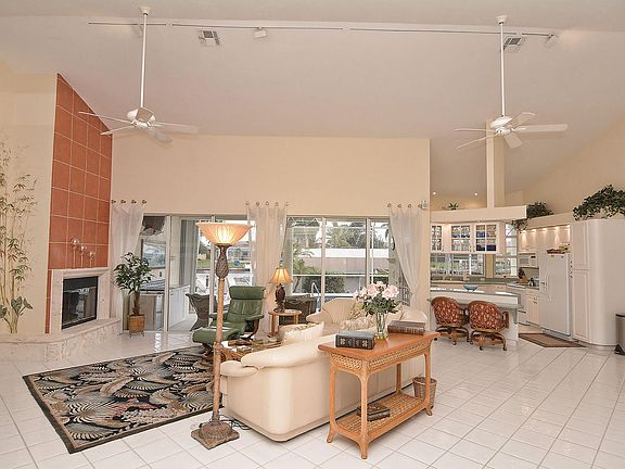 Waterfront, Sailboat access, high ceiling GREATROOM, POOL home. Home sits on a 200 ft canal and is just three minutes to the river, no bridges. Spacious outside area, that includes heated pool and spa, cooktop. Dock includes a lift, and canopy. All updated in 2018/2019. High soaring ceilings throughout home including bedrooms and bathrooms. Each bedroom has its OWN full bath. So, three masters! Ideal as a vacation rental or family home. Freshly painted circular drive and exterior of home also just painted. Interior includes a wood burning fire place and accent wall. Tile roof replaced in 2014. A/C replaced in 2016. Living area tv replaced in 2020. Dishwasher and stove 2017. Home is surrounded by million dollar plus homes.