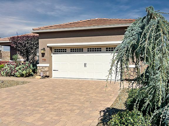 Looking for amazing Granite Mountain views from your backyard? Look no further. This 1,923 sq foot home offers upgrades galore! Home is complete with two bedrooms and two and a half baths. Split floor plan. Guest bedroom is complete with an en suite bathroom. Huge separate den with French doors perfect for an office. Primary bedroom is oversized complete with a beautiful upgraded tiled bathroom. Lovely tile floors throughout. Kitchen offers upgraded appliances, granite countertops and loads of cabinetry. Epoxy floors in the oversized two car garage. Nice flat yard with lots of privacy and extensive views. Enjoy living in a great neighborhood that offers all of the wonderful amenities that Prescott Lakes has to offer with golf, Athletic Center and social events available to you!