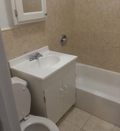 Freshly painted, nice sized 1 bedroom apartment with hardwood floors and separate eat in kitchen, full bath and lots of closets space. Near Subway, buses, shops Heat and hot water are included in the rent.
