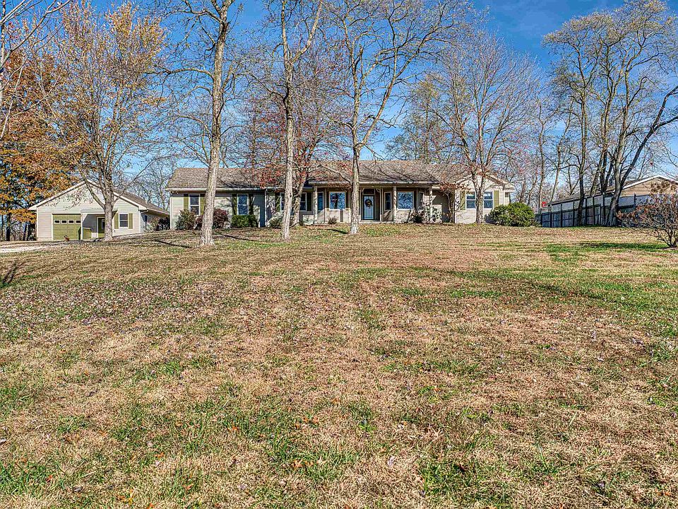Discover your dream home on 5 stunning acres just south of Boonville! This beautifully remodeled 3-bedroom, 2-bathroom oasis boasts nearly 1800 square feet of modern living space, featuring a gourmet kitchen and a dedicated office for all your work-from-home needs. Relax in the outdoors from the large covered front porch or the expansive, covered back deck while enjoying this unique property, complete with a gazebo overlooking a beautiful pond. With two outbuildings, a shooting range, and wooded walking trails, adventure awaits right in your backyard, and there is wildlife galore! But wait, there is MORE! The detached guest house, with attached garage, offers 840 square feet of updated living space—perfect for visitors, in-laws, or even an Airbnb opportunity! This property is a must-see! It is your perfect little slice of heaven.