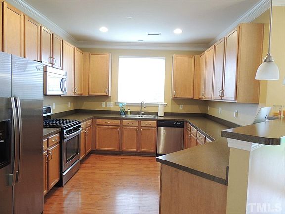 End unit t-house w/ style! Hardwood on 1st floor,42" maple cab, stainless appliances,gas stove, breakfast bar&large pantry in kitchen.Master bed has large sitting area & 2 walk-ins. Tile floor, sep. shower. Many guest parking spaces throughout.Security system ready to use.Private large yard backs up to trail. Enjoy Amberly clubhouse,pool, playground & workout facilities. Some pictures from previous time.