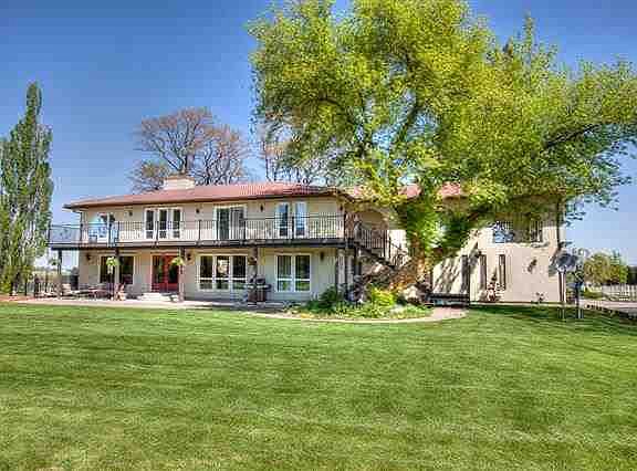 Wonderful custom home with Spanish influence has been beautifully updated! Granite kitchen and stainless steel appliances, formal dining room with wood beam, oversized master suite with private enclosed balcony and fireplace, paved access, 40x60 barn, property is fenced and cross fenced, sports court, 2 wells, complete in-law set up and much, much more!