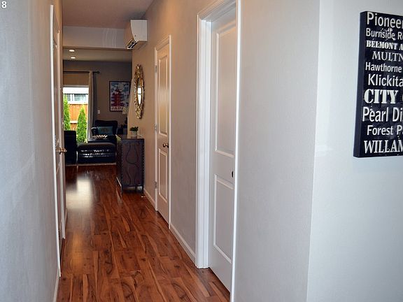 Sought after River's Edge townhouse ideally located in this popular community just steps from the path along the water. Shows like a model with the rich colored flooring and cabinetry, stainless appliances, and decorator colors. Master Suite, additional bedrooms + hall bath & laundry upstairs. The fenced outdoor space ideal for relaxing and entertaining.