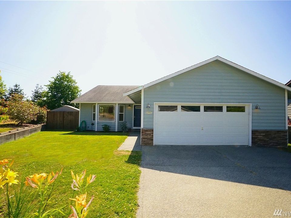 Beautiful 3 bed 2 bath 1700 sqft rambler at the end of the cul-de-sac. Vaulted ceilings & sky lights make this home light, bright & open. Six panel doors, wood wrapped windows & brushed nickel hardware really dress up this home. Kitchen (w/eat space) features quartz counters, tiled backsplash & custom breakfast bar. Bay windows gives this home lots of character, tiled fireplace in family room w/slider to back patio. Right next to the very private play area with a jungle gym!