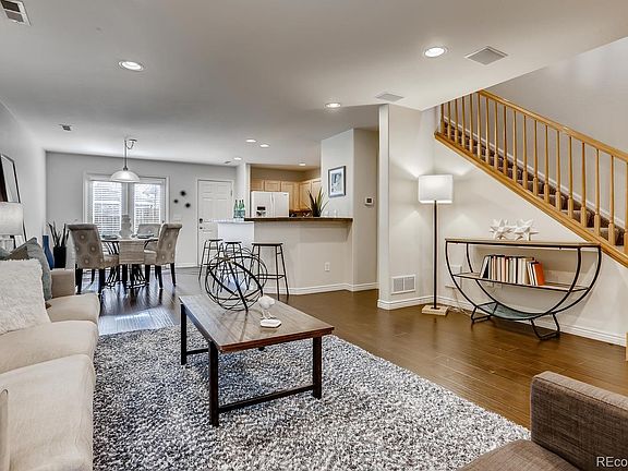 This open floor plan, 2 bedroom, 3 bathroom townhome is just steps away from tons of open green-space and Cherry Creek Trail! You will walk in and marvel at the amazing light and open floorplan with gleaming hardwoods. Upstairs boasts a huge master bedroom with his and her's closets, private bath, and newly installed carpet. This unit has an attached 1 car garage with an additional deeded parking space. This gem will not last! Nestled in a quiet community, with access to a private park that boasts a covered pavilion, gas grill, tables, and playground. WELCOME HOME!