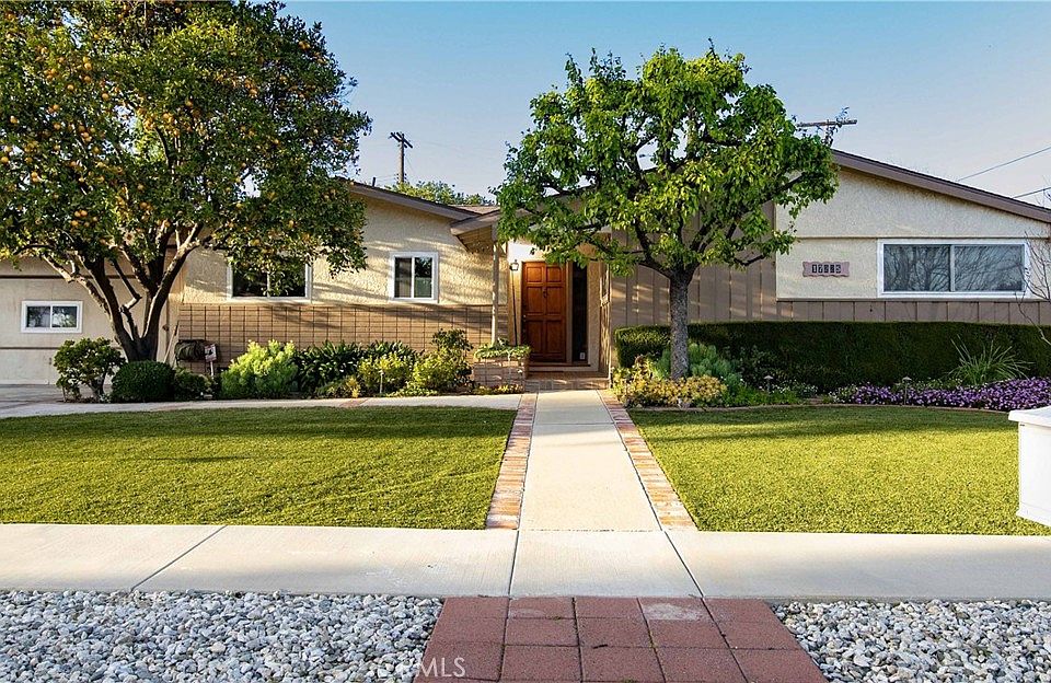 Welcome to this lovingly cared for home in a highly desired Northridge neighborhood presenting an extraordinary opportunity for buyers. An 11,000 square foot lot offers a remarkable backyard, with a gated pool for refreshing summer dips and a sprawling grassy area with impeccable landscaping that looks like a park and provides privacy, and a serene atmosphere. A built in BBQ and a spacious covered patio are perfect for hosting gatherings year-round. Back inside you will find a large living room with beautiful hard wood floors, built in shelving, and a fireplace. A bright kitchen, equipped with stone counters and ample cabinet space with a dining room overlooking the front yard are attached to a garage conversion that provides versatile extra living space not included in the square footage. With the flexibility to create a game room, office, or potentially generate rental income by converting to an ADU. The primary bedroom features 2 closets, an ensuite bathroom, and access to the backyard. Three additional bedrooms, each with ample closet space a large linen closet and a hall bathroom with access to a side yard with an above ground hot tub. Recent upgrades, including a new roof, plumbing, mainline, and ducting completed in 2021, newer windows and vinyl privacy fencing ensure peace of mind and enhance the property's value. Easy access to the 118 and 405 freeways, the Northridge Fashion Center, Vineyards in Porter Ranch, and an abundance of shopping and dining options. Close proximity to award winning schools including CSUN, and Granada Hills Charter High School. Don't miss out on the chance to call this exceptional property home.