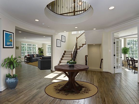 The Potomac new home plan is like the river it was named for --- flowing and dramatic. Starting at over 4,100 square feet of luxury living space, the Potomac is the largest of our Foxwood Crossing home designs. Included is a 2 car side load garage, with your choice to add a 3rd car or 4th car garage. The first floor plan radiates from a dramatic, circular gallery to generous open spaces that flow from room to room. Featured is a grand kitchen with large center island and walk in pantry. Upstairs you will discover a sumptuous Owners' Suite with a large sitting room and spa bath. You can even choose to expand the Owners' bath and walk in closet. Three more large bedrooms and two more baths surround the central gallery. The Potomac offers a special option to accommodate the multi-generational lifestyle of today's families---the attached Family Guest House. This first-floor residence features a spacious bedroom, living room, full bath, laundry and kitchenette. The Family Guest House includes a private exterior entrance as well as direct access to the main house. From welcoming the occasional visitor to providing a desirable, long-term residence, the Family Guest House adds space, comfort, and value to your new home. An elevator is also available with the Potomac design, so all three levels an be easily accessible to all members of your household.
