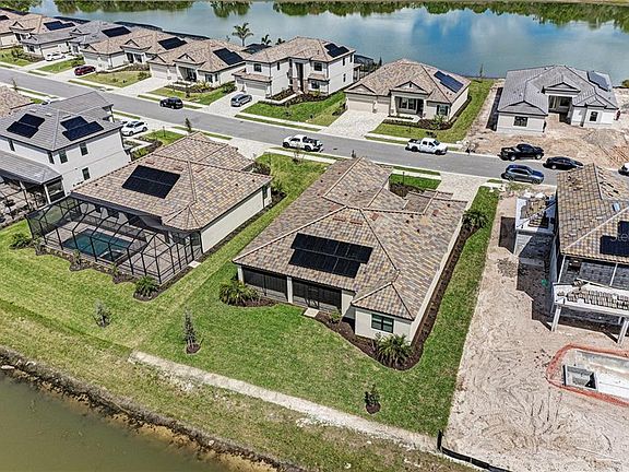OPEN, BRIGHT, MODERN, CHARMING, NEW CONSTRUCTION and available now! Come see the newest Estate floor plan at Polo Run, the 3 bedroom, den, 3 full bath and 2 half bath Agostino II. Modern, open living spaces with an expansive lanai and tons of natural light coming into the home. Gorgeous lake views from the kitchen, great room, dining room and owner's suite. Large covered lanai with pool bath and plenty of room to add a pool. The owner's suite features dual walk in closets, dual vanities and a separate tub and shower. Every bedroom has an ensuite bath. The kitchen is fully integrated into the open living concept for great entertainment flow. Upgraded 24x12 wood-plank tile with white cabinets and granite counters. The extra wide garage offers plenty of space for a golf cart and storage. All appliances and several smart home features included. Polo Run is the only all solar community in Lakewood Ranch and offers resort style amenities including yard mowing, weeding, mulching, irrigation, fertilization and yard pest control; community pool, clubhouse, tennis, pickle ball, basketball, bocce ball, fitness center, aerobics/yoga studio, and dog park. Lakewood Ranch features top rated schools, a wide selection of restaurants, entertainment, and shopping options, and is a short drive to some of the world's top rated beaches.