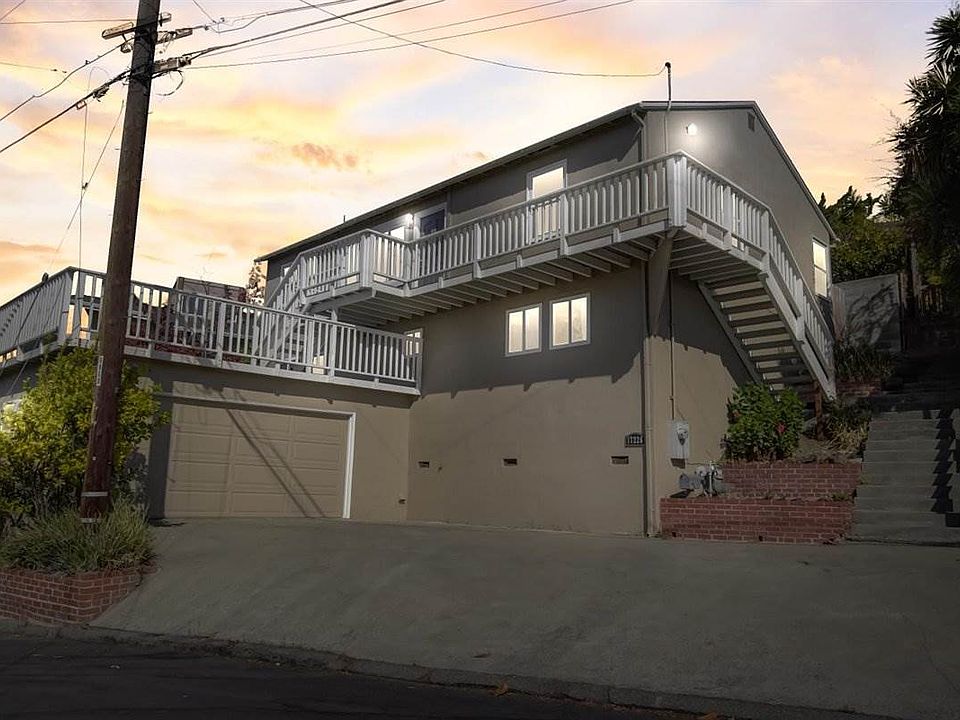 Charming Castro Valley home has an open floor plan with magnificent views of the bay and lively city lights. This home features 2 bedrooms and 1 full bath upstairs, remodeled kitchen with granite counter tops, stainless steel appliances, dual pane windows, wood floors. Downstairs has a spacious master suite with updated bathroom, bonus room that can be used as an office. Enjoy tranquil sunsets on the front deck with panoramic views. Close proximity to shopping, BART, 580 and 880 freeways. MUST SEE AS SOON AS POSSIBLE!!