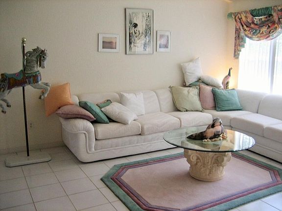 Don't miss this rarely available villa. Very desirable end unit. Nestled in lush tropical foliage, this home has vaulted ceilings, skylights, one car garage and private screened patio. The 3rd bedroom is used as a den. Bright kitchen opens to the breakfast area. Community pool. Manned security gate. No equity required. Close to shopping and major highways. ''A+'' schools.