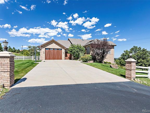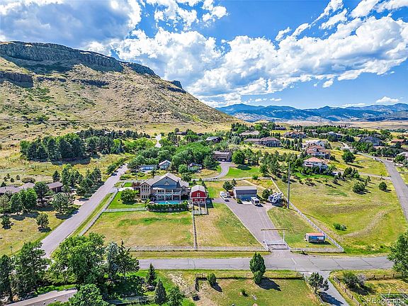 The living room, with voluminous ceilings, opens to the dining area offering floor-to-ceiling views of the expansive lot and the city. A gas fireplace, adorned with Telluride stone and a reclaimed wood mantel, adds to the ambiance. A slider off the kitchen leads to a covered patio with electric sunshades, perfect for al fresco dining, overlooking the pool and Denver city lights. The upper level features a private retreat featuring a loft with custom built-ins, a bedroom and a full bath. The lower level walk out basement is finished with a wet bar an expansive great room, two bedrooms, two bathrooms, one with a steam shower and an additional washer/dryer, cedar closet and large utility room add practicality and complete the lower level. French doors open to a 21x39 fenced-in, heated swimming pool oasis for all your guests to enjoy. The two-story heated barn includes a pool equipment room, 1/2 bathroom, two stalls, a tack room, and an upper-level 800+ sqft workshop. The fully insulated, heated attached garage offers 14' ceilings, workshop space with cabinets and over 1600 sqft of to park your motor coach or 6 cars on the newly refreshed epoxy flooring. Enter through the Ranch Gate up the stone driveway to an additional 800+ sqft detached garage that provides another workshop and space for cars or projects. This A-2 zoned property offers abundant workshops, gated space for horses, and room for farming.