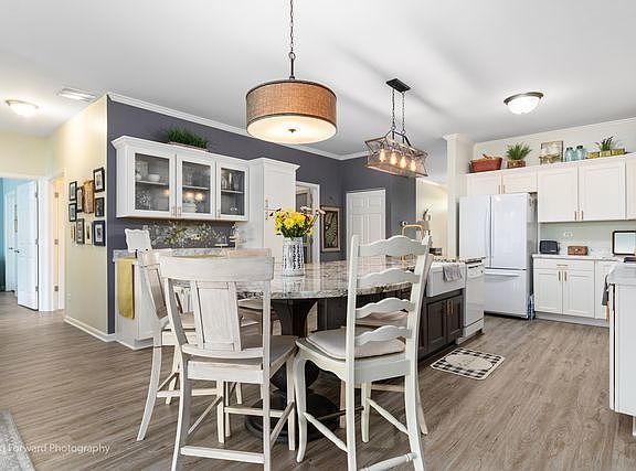 Beautifully renovated ranch townhouse. Two bedrooms/two baths. Kitchen has white shaker cabinets with crown molding. Huge granite center island. Newer luxury plank vinyl flooring throughout. Master bedroom has walk in closet. Wonderful sunroom overlooking tree line and landscaped yard with patio. White wood trim and white paneled doors. Lago Vista is a wonderful 55 and over community. There is a clubhouse, indoor and outdoor pools, bocce court, great room, work out room, library, craft room, massage center and salon. Plenty of activities including concerts by the pool, seminars, theme parties all year long. Do as much or as little as you want while you relax and enjoy the many ponds and walking paths. Live maintenance free and never cut grass or shovel snow again!
