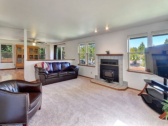 Bring your toys! This fantastic 3 bed 2 bath rambler will please any buyer! Located in the cul-de-sac of a dead end quite street. Ample parking, 2 car garage & HUGE side gate opening into the private back yard. Park your RV & boat there now & build your dream shop; there's tons of room! New features-sliding glass doors, engineered hardwoods, stainless appliances, blinds, carpet, H20 heater, roof, fence, exterior paint, gutters & blown-in insolation. Wood stove, 2 decks & walk to Silver lake too!