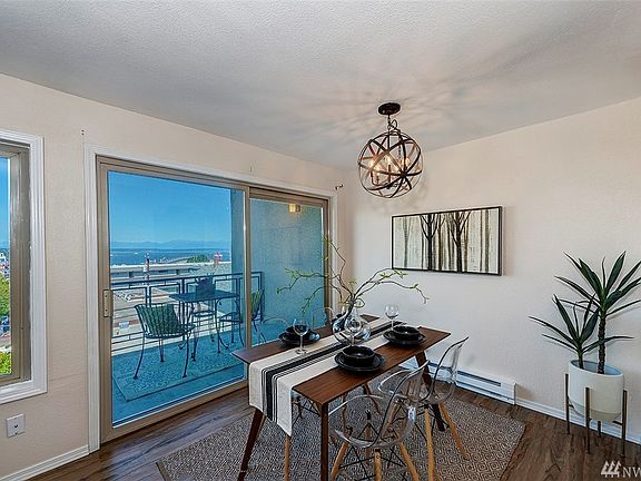 Enjoy incredible city, mountain, and Puget Sound views from one of Seattle's hottest areas to live. Everything from stadiums, parks, restaurants and transportation is close by ! This 1 bedroom, 1 bath unit is gorgeous. New LVP flooring in living room & eating area. All appliances stay including a washer/dryer! 2 parking spots & no restrictions on pets. Sit out on your private deck and enjoy the city! Super low monthly dues. This 16 unit , secure building is a true bright spot on N Beacon Hill !