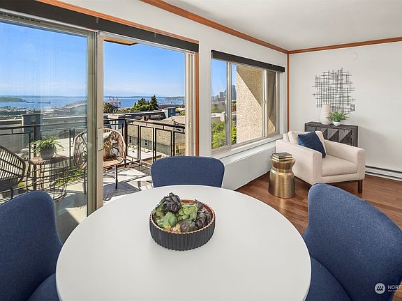Incredible jaw dropping views of Downtown, Elliott Bay and Olympics from this top floor Beacon Hill condominium. Prepare to be amazed at the "million dollar views" available for just 1/3rd the price. Inside the home find fresh paint, hardwood floors and view deck off the dining area. Updated kitchen with stainless steel appliances, granite counters and updated cabinetry. Large living room spaces flooded with natural light due to the western exposure and window wall. 1 parking space and storage included. Low HOA dues at $386 per month which cover water, sewer, garbage, common area maintenance, insurance, etc. Come live the good life with continually entertaining scenery front and center from your home.