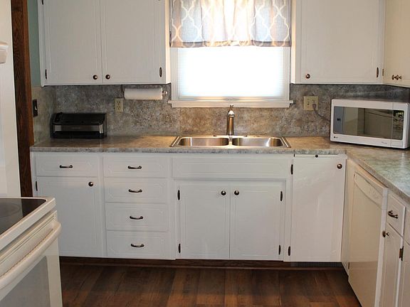 Immaculate remodeled 4 bedroom home mint condition move in ready! Absolutely darling home showing extreme pride of ownership! Three bedrooms on main level, formal dining, all fresh paint, vinyl windows and new flooring throughout. Updated white kitchen cabinetry and flooring, includes all appliances. This home features custom tile, charming crown molding, steel doors, nothing missed. Large 20 x 14 concrete private patio for outdoor entertaining, beautiful metal fountain with concrete surround and flower bed. Oversized lot with stunning mature trees including birch. 2005 built 40 x 31 garage LOADED with amenities! Fully insulated, in floor heat, fluorescent lighting, phone jax, internet, TV hookups, wall AC unit, 220 electrical, stainless steel counter & oak cabinetry.