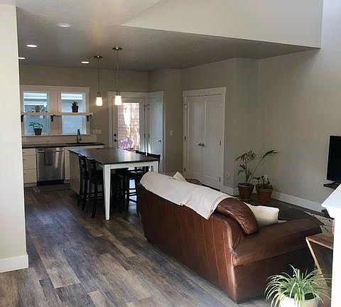 Newer construction in quaint bench neighborhood. Fully furnished, all utilities paid (including WiFi). Centrally located between downtown Boise and the airport. Private patio oasis with a pass-through counter from kitchen. Perfect for BBQs. Within a couple blocks of Albertsons, restaurants, and bus stop. Open concept and modern living. Interior wall is double layered. 6-month lease, with opportunity to extend maximum of one month. All utilities (including WiFi) paid by property owner. Fully furnished, personal property checklist included with lease. Up to 2 dogs allowed, no cats. No smoking. One parking spot included behind garage, street parking available in front of home. Garage will not be accessible and will remain locked throughout lease.