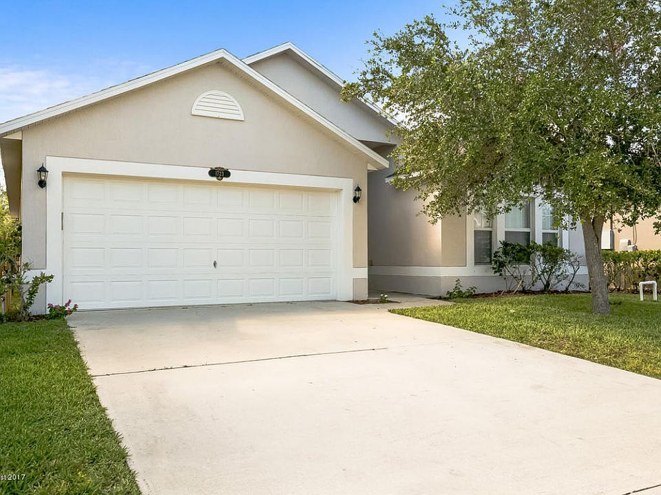 Located in great area, backs to conservation area in quiet gated community with good schools. Home features laminate and tiled floors, vaulted ceilings, screened porch, brick patio, separate laundry room, huge master bath with separate tub and shower, updated kitchen and new hot water heater.