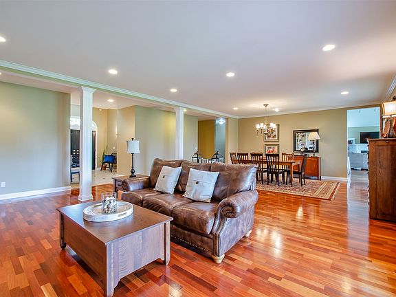 Meticulous and exquisite best describes this brick ranch in Tall Oaks S/D with Harris-Tarkett hardwood engineered flooring. The gourmet kitchen offers Hass maple cabinets, dish and wine racks, stainless steel appliances that includes granite countertops, Viking cooktop, a double convection oven, large french door refrigerator w/double door freezer, Kitchenaid dishwasher and a bar area that seats 3-4. Keeping room and eating area offers built in floor to ceiling bookshelves and a cozy gas fireplace. The dining room and living room offers an open concept defined by pillars. The living room also offers bookshelves to the ceiling with ample cabinets below and there are patio doors that lead to the covered back patio to enjoy beautiful sunsets. Owners suite offers vaulted ceilings, plantation shutters and a patio door leading to back patio. The master bath has a garden tub and separate shower w/ seat, double vanity,power flush toilet and two linen closets. Bedroom 2 has window seat, plantation shutters, floor to ceiling bookshelves and a walk in closet. Bedroom 3 offers plantation shutters and a large closet. Jack n Jill bath. Basement offers a mirrored exercise room, family room or game room and another room that could be used as a 4 th bedroom or office. Ample storage in basement along with a full bathroom. This truly is a wonderful home! New roof with transferable warranty