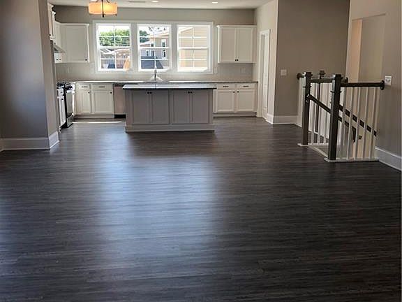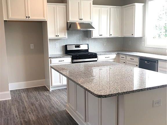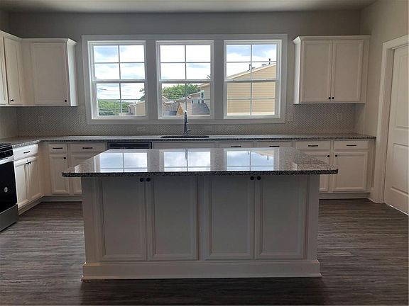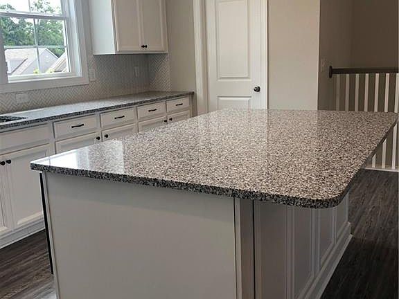 - Kitchen Features: Pantry, View to Family Room, Stone Counters, Kitchen Island, Solid Surface Counters, Cabinets White