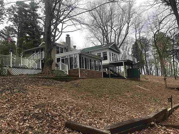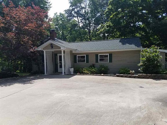 Wildlife Paradise nestled on 5 wooded acreage close to town. Home Features custom wood working with timber frame ceilings. 2 Bedrooms 2 Baths. Spacious kitchen with solid hickory cabinets with custom pantry fold out cabinet with hard wood floors. Kitchen flows into a sunroom allowing the ability to see all the outdoor beauty. A back deck with trex decking with Sunsetter awning makes a nice place to sit outdoors. There is a lower deck as well making for additional outdoor space. Second kitchen located in lower level makes a great space for entertaining guest plus the lower sunroom adds a nice feature. Lower concrete patio has option to put a hot tub with prewired hook ups. The heating system features a heat pump system with an outdoor wood boiler plus 2 electrical thermal storage heaters and LP gas connections. House has central air cooling. When the power goes out the house features a 17KW whole house generator that operates on LP gas. Detached 2 car garage 18'x50' with LP heater. A concrete driveway leads you back to this paradise. This is a must see property to appreciate the beauty it offers.