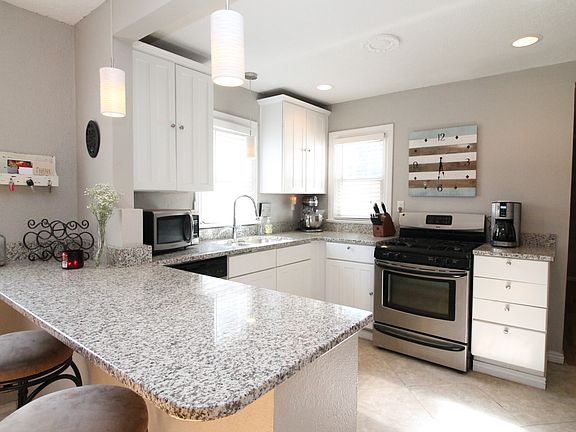 Beautifully updated and central air conditioned ranch style home on the west side. Granite counters, stainless steel appliances (gas range), large pantry, recessed lighting and 24 inch tiles in the kitchen. Original hardwood floors and fresh paint throughout the home. Gas fireplace in the living room, the bathroom features a claw foot tub. Large rooms make this home great for entertaining. Large patio off of the living room, and another 10x8 covered patio off the back of the garage.