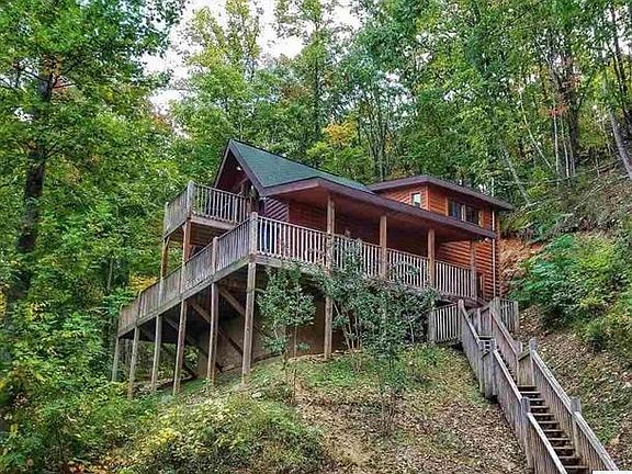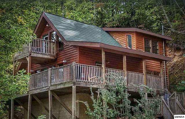 Owner/Agent Nightly Rental Cabin/ Investment Property on one acre lot private wooded lot with hot tub and Mountain View located directly between Pigeon Forge and Gatlinburg for a fantastic 15-20 minute drive to most all attractions! Property generated $33,742.51 in 9 months this year (time it's been listed on Airbnb which is the prime money maker for this property, it also listed on Vrbo). Property features Master bedroom with private master bath on main level along with loft upstairs and full bath off the loft. Catwalk leads from loft out to 2nd story balcony featuring mountain view. Exterior main level decking features grill and hot tub. Negotiable on leaving furnished.
