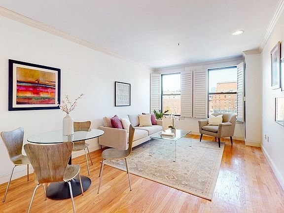 This South End gem is located in Historic Minot Hall, a modern, professionally-managed elevator pet-friendly building w/ a large common patio & grill. The spacious living and dining room has hardwood floors plus high ceilings/crown moldings/plantation shutters. Attractive living room & bedroom overlooks flowering trees on W.Springfield St. Kitchen has granite counters, SS appliances, NEW gas stove, and microwave. Washer/dryer located in pantry. A large bedroom features California Closet & 2nd step-in closet for great storage. Pictured are flexible furniture layouts showing living, dining areas & bedroom. Reasonable HOA includes Central A/C, Heat and Water. Covered on-site parking w/added fee. Great location in the vibrant South End, convenient access to public transportation (Silver Line & #1 bus) make downtown Boston & Cambridge an easy commute. BU Medical complex is nearby making this home an excellent option for healthcare workers. This home near shops & restaurants awaits you!