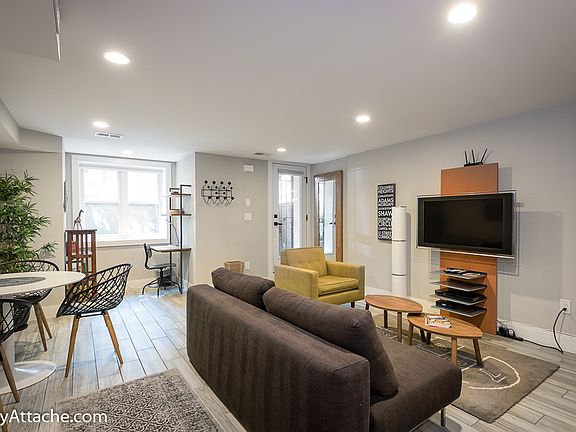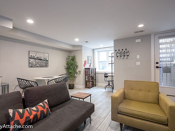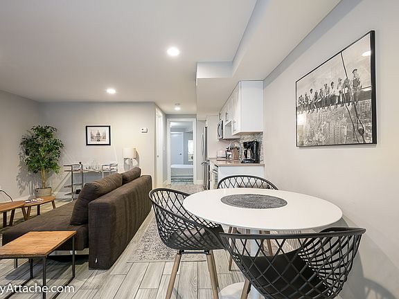 This fully furnished and stunningly renovated 1 bedroom, 1 bathroom English basement apartment is located on the ground level of the property. The property features high-end finishes, a queen-size bed, a luxury bathroom, stainless steel appliances including an electric stove and an in-unit washer and dryer, and central air conditioning. This prime spot is located between the newest 14th Street restaurants and shopping (Trader Joe's, West Elm, Whole Foods, and myriad restaurants) and Dupont Circle with its numerous shopping and dining venues. The U Street (green and yellow lines) Metro Station is a 7-minute walk. The Dupont Circle (red line) Metro Station is just a 10-minute walk. Walk score: 97, Transit score: 89, Bike score: 93. Additional fees may apply, further verification is required. There is a 2.5% service fee and a departure cleaning fee. Minimum stay requirement is 30 nights.