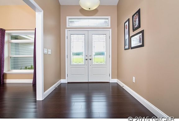 Elegance in the country on 5 acres! This home was custom built with luxury in mind. 4 bedroom 3 baths plus an office is move in ready. A Concrete block home with a metal roof and a 3 car side entry garage has an Open kitchen with granite counter tops and stunning solid wood custom cabinets, breakfast nook and a formal dining. The wood floors are dark bamboo and are through out the house with tile in kitchen and baths. Master bedroom has a trey ceiling and french doors out to the pool. The master luxury bath has a shower to die for. A garden tub, granite counter tops and custom wood cabinets. The salt water pool is waiting for you. Top of the line fiber glass pool with a covered patio and pavers on
