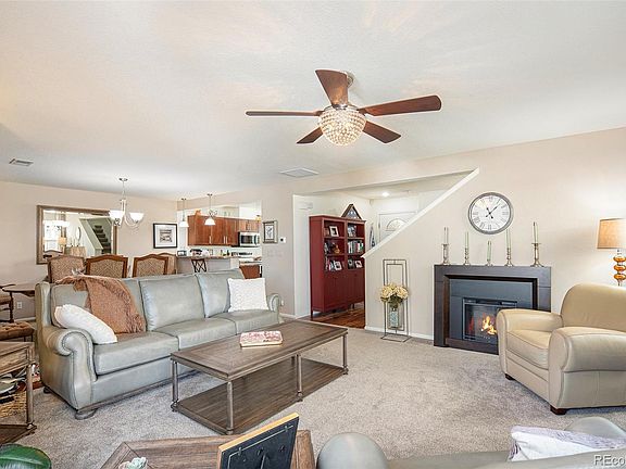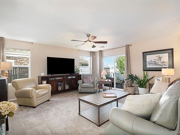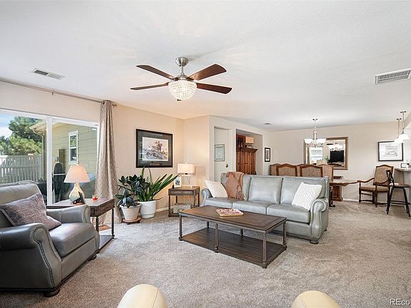 Engineered hardwood floors at every entrance, plush carpet throughout the living spaces and bedrooms, recessed lighting and ceiling fans in the living room and primary bedroom.