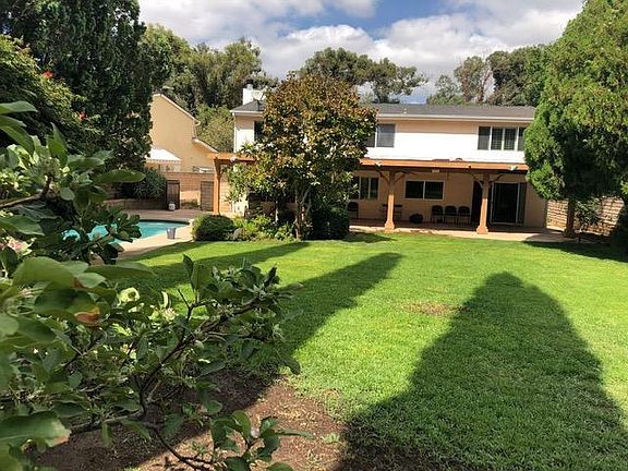 House is ready to move immediately Amazing property, fantastic condition. Large house with 5 Bedrooms (one downstairs), 3 bathrooms. This is a relaxing resort feeling! Large backyard with many fruit trees, vegetation and a pool. This home has a VERY rare HUGE backyard with massive grass area, pool off to the side and covered patio. Outdoor movie theater on a patio! Formal entry with marble floors leads to very large living room and true formal dining room! Downstairs bedroom next to bathroom with shower and granite counters! Upstairs bathrooms are redone with granite, new tile and new cabinetry. Newer A/C and Heat. Large kitchen looks out to backyard. Family room off kitchen. Easy access to all the freeways. Walking or biking trails nearby. Beautiful park across the street. Safe, family friendly neighborhood. Award winning elementary school walking distance. Owner pays for pool maintenance and gardening. Renters responsible for all utilities. First/Last month rent and a security deposit is due at signing. Pets will be considered for an additional security deposit.