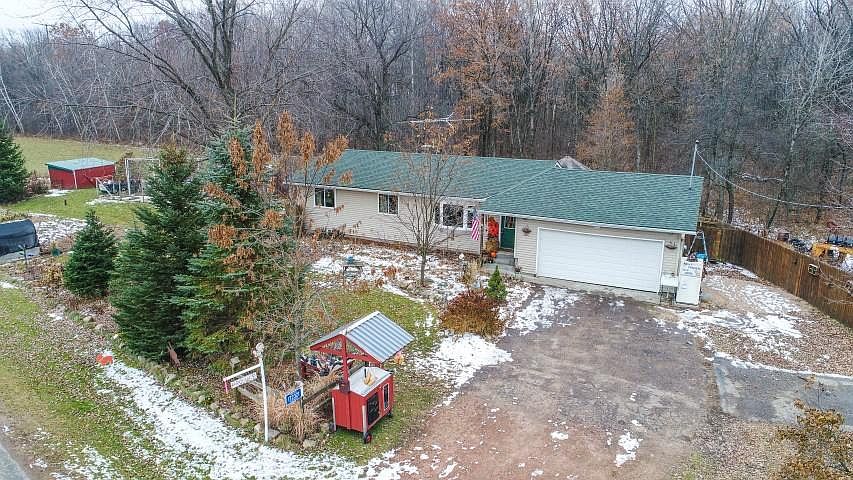 Want to live out of town? Here is a great opportunity for a 3 bedroom, 1 Bath, 2 car attached garage, Ranch style house on 0.77 acre lot. Kitchen and dining continue to the living room giving it an open feeling. Lower level finishing include a pellet/corn burning stove that will keep you nice and warm. Walk out and enjoy sitting on the deck or enjoy the outdoors around the campfire. There is also a screened in gazebo that is supplied with power if you prefer. Beautiful landscaping with perennials, grapes, raspberries and a large vegetable garden and chicken coop and run. New roof shingles in 2012 and new windows in 2007. A 500 gallon LP tank is owned and included. Sauna in lower level is not included. Recent address change as previous address was 6297 Plover River Road. Come take a look at this one today!