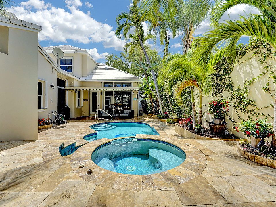 Welcome to your own private oasis in one of the most sought- after country club communities-with NO MANDATORY MEMBERSHIP! This elegant two story townhouse offers the perfect blend of renovation with resort style living. Step inside to find 3 spacious bedrooms, 2.5 bathrooms, and an open, light filled layout designed for both relaxing and entertaining. The heart of the home extends outdoors to a lush private courtyard, where a sparkling pool and spa with waterfall feature await. Beyond the courtyard you will find a second covered patio terrace on the back of the exterior of the property, with large space that is perfect for lounging, dining, etc. All nestled In a prestigious all ages golf/tennis country club resort style community. Perfect location/Central Boca with amazing school zoning.